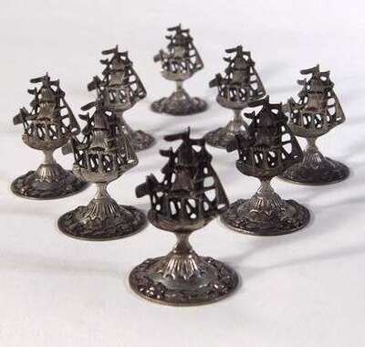 Set of eight sterling silver novelty maritime napkin holders late 19th / early 20th century