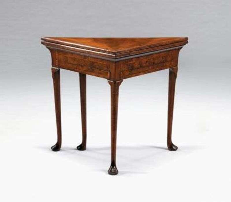 George I walnut & featherbanded corner games table circa 1720
