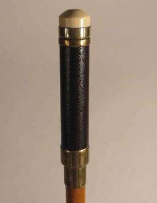 The tapered shaft with a leather bound brass and ivory handle, opening to reveal a hinged telescope.