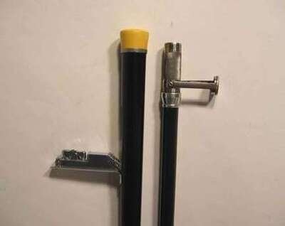 Each with ebonized tapered shafts, one with a lateral hinging compartment revealing a lighter, the other surmounted by a match holder and strike inscribed, "Marbles Gladstone, Michigan USA".