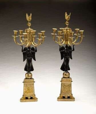 Pair of Empire gilt and patinated bronze candelabra 19th century