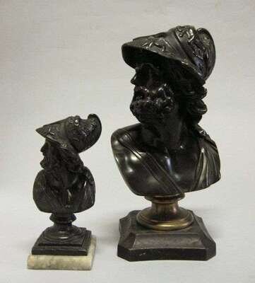 Two Continental bronze busts menelaus