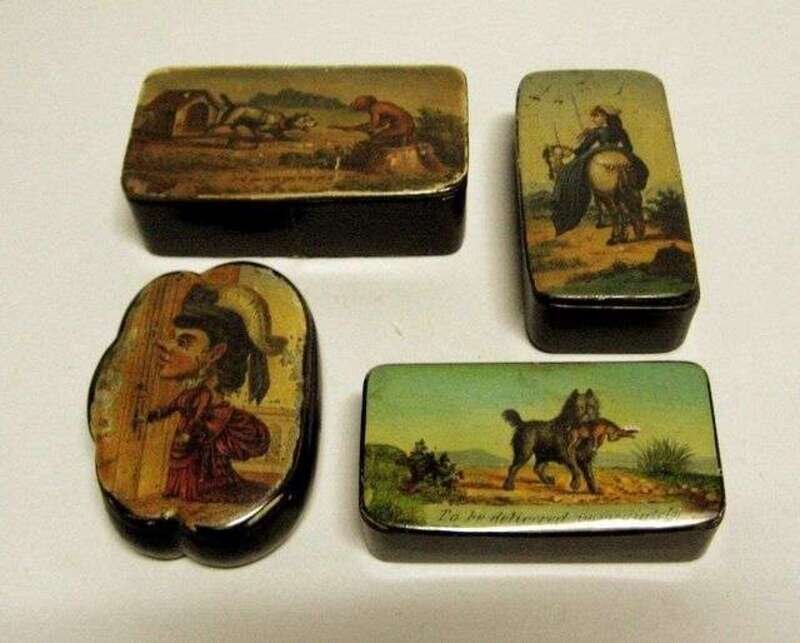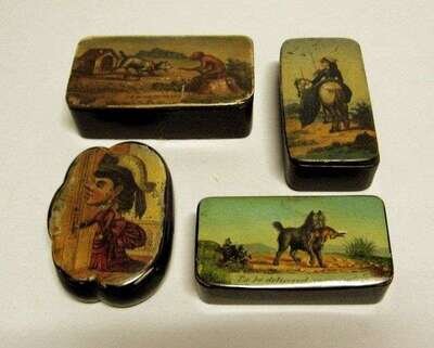 Four English lacquer snuff boxes 19th century