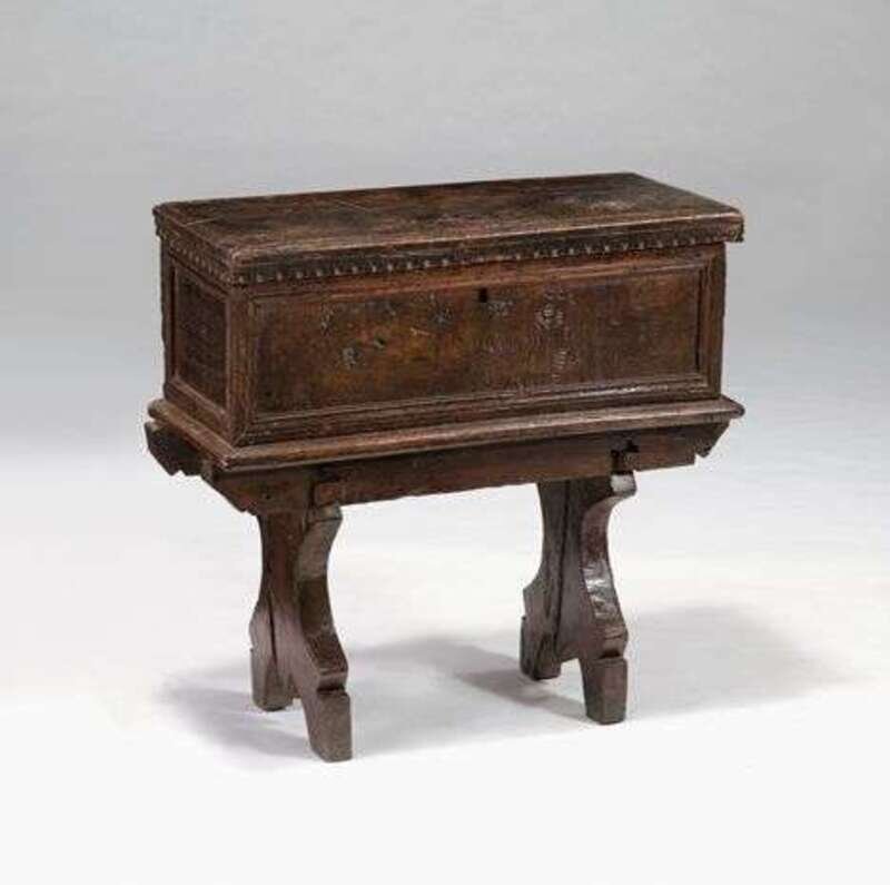 Small Italian walnut cassone on stand late 16th / early 17th century