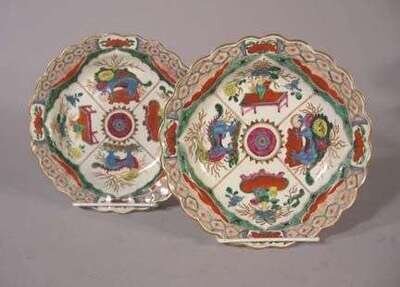 Pair of Worcester 'Bengal Tiger' porcelain dessert dishes circa 1770