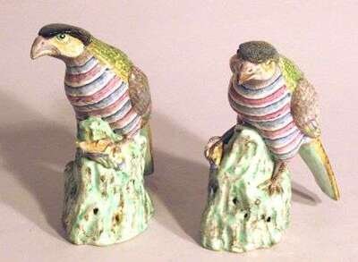 Pair of Chinese export figures of hawks with prey early 20th century