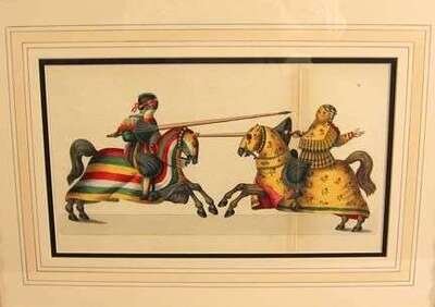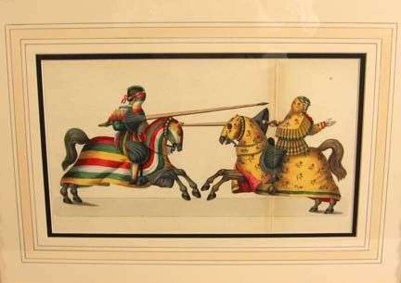Four framed hand-colored engravings of knights & armor by Franz Kottencamp germany, 1843