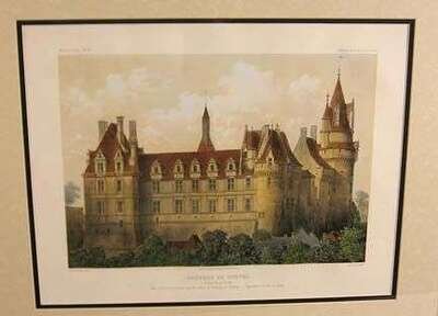 Six framed hand-colored lithographs of French chateaux by Pettit Paris, 1861