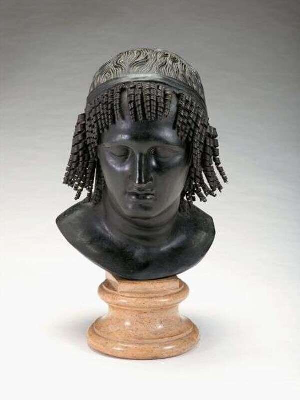 Greenish / brown patina raised on a sienna marble socle base. H: 15, H: 21 in including base.