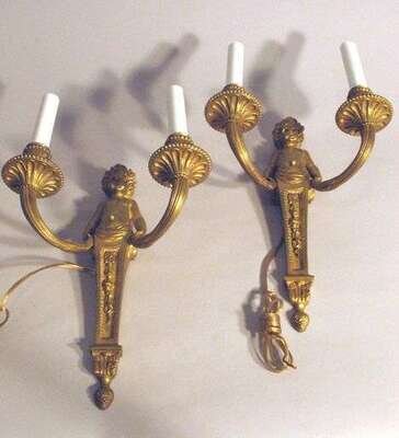 Pair of Louis XVI style gilt bronze wall sconces