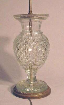 Mounted as a lamp with ovoid diamond cut sides raised on a socle base.