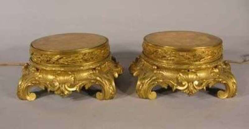 Electrified, the rococo style stands raised on four acanthus cast scroll feet, centered by shell motifs..