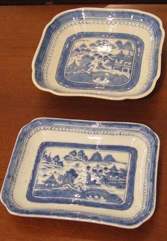 The first of rectangular form with notched corners, the second, of square form with scolloped rim.