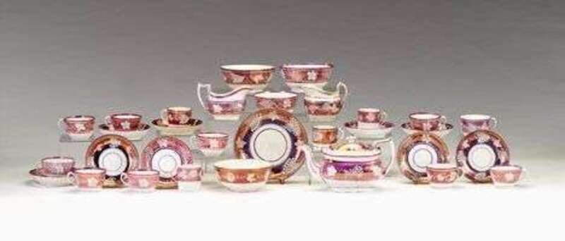 Large group of Staffordshire pink lustre resist teawares england, circa 1840