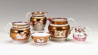 Nine Staffordshire pink and copper lustre items england circa 1830