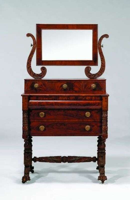 Classical carved mahogany gentleman's dressing stand probably baltimore, circa 1835