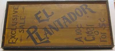 Of rectangular form with black-painted molded edge enclosing yellow-painted panel inscribed " Exclusive Sale-El Plantador- A 10C Cigar for 5 c."