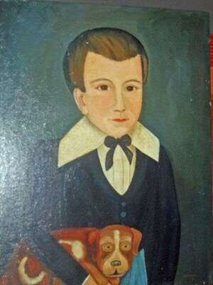Carolyn Stevens 20th century portrait of a young boy with dog