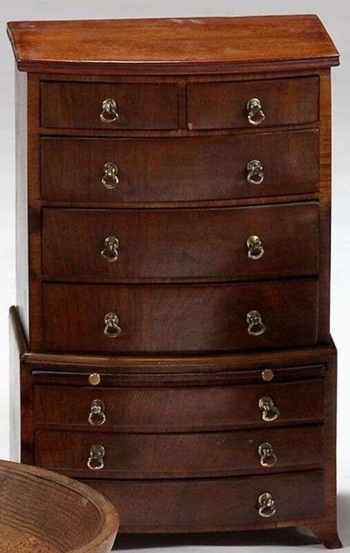 Federal miniature bow-front mahogany chest -on -chest 19th century