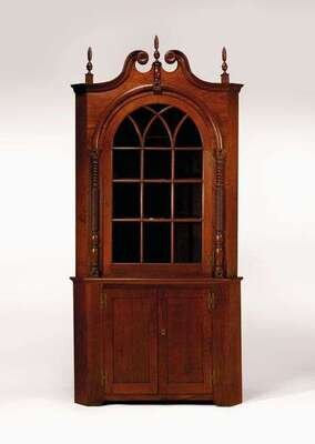 Walnut glazed corner cupboard pennsylvania, 19th century