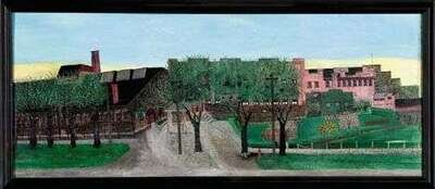 Unsigned, inscribed 'G.B.Wood & Son Manufacturing Engineers Power Transmitting Machinery,' oil on artist board, framed.