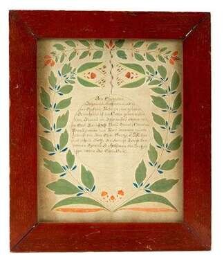 Fraktur: a Taufschein for Charles D. Hoffman earl township, berk's county, pa circa 1835