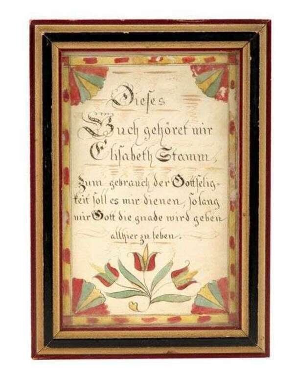 A Fraktur: A bookplate for Elizabeth Stamm probably bucks county, first half 19th century