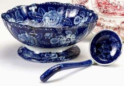 Staffordshire Historical Blue transferware footed punchbowl england, circa 1820