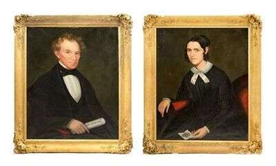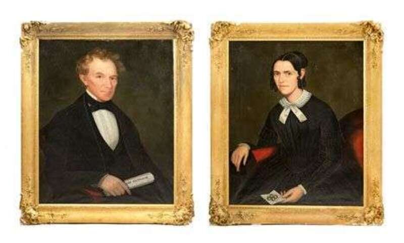 Attributed to Ammi Phillips (1788-1865) portrait of a lady and gentleman
