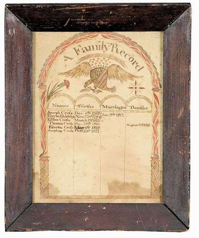 Family record for Joesph and Electa Eldridge Cross flushing, new york, early 19th century