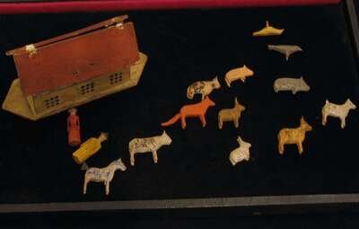 Including figure of man and woman and twelve figures of animals. (hinges to ark broken).