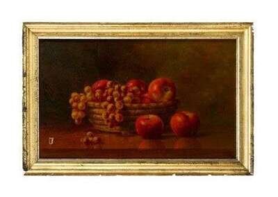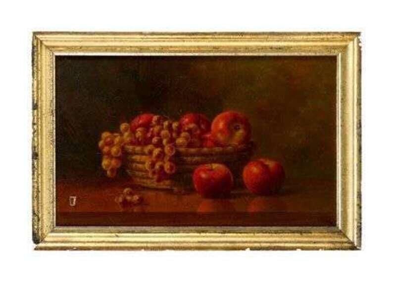Albert Francis King (1854-1945) Still life with rye basket filled with fruit