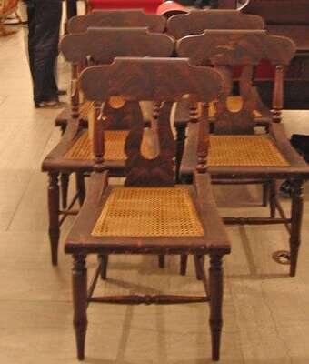 Six Classical rosewood grain-painted side chairs, cane seated circa 1840