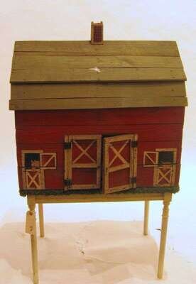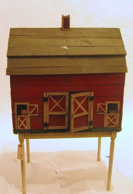 Painted wood doll-house size barn mid 20th century