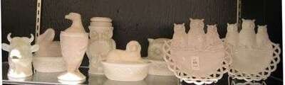 Eight Milk Glass novelty Items mckee glass company and others, late 19th/early 20th century