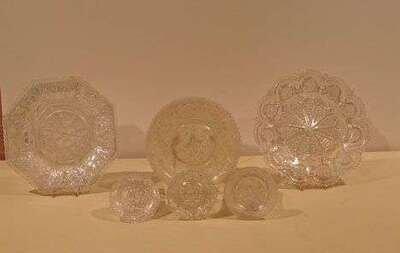 Group of uncolored lacy pressed glass items attributed to boston & sandwich glass co., sandwich, ma, 1835-1860