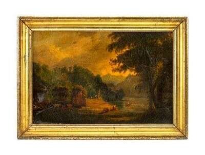 Unsigned, artist identified as "W. Dilk" on label of Carnegie Institute reverse, oil on canvas, framed.
