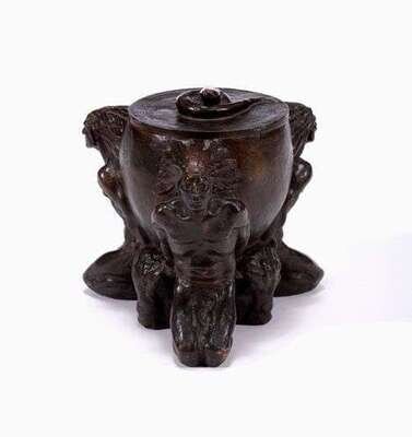 ABASTENIA ST. LEGER EBERLE INDIAN AND BUFFALO BRONZE TOBACCO JAR inscribed "St. Eberle SC"