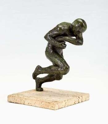 Bronze, H: 9 1/2 in., on marble plinth. Green-brown patina.