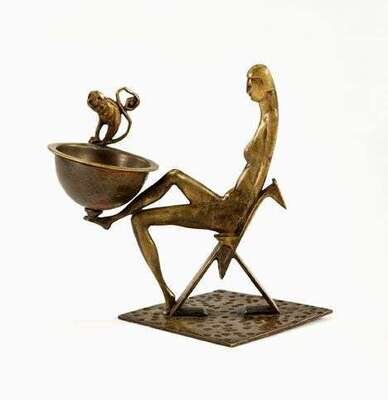Seated figure of a woman with a bowl and monkey; stamped "HAGENAU 1934"