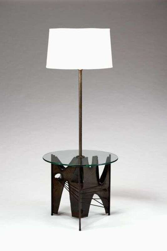 Black metal floor lamp table