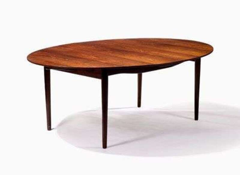 Oval top, cylindrical tapering legs, with two additional table boards.