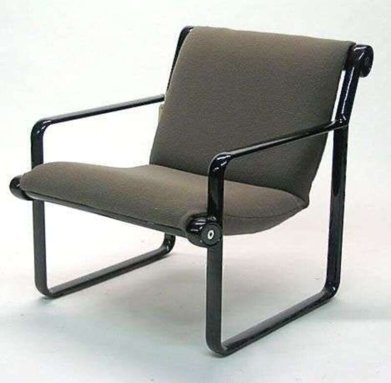 Knoll black enameled gray upholstered open armchair