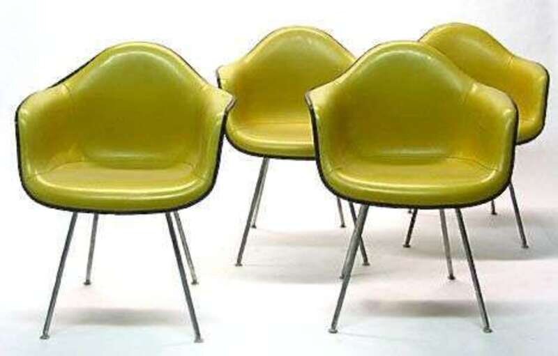 Set of four Herman Miller yellow shell chairs