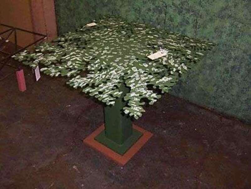 Cast metal green and white painted single-pedestal tree breakfast table 1970's