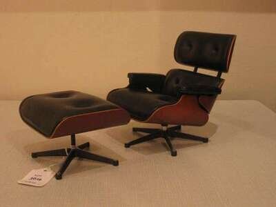 Miniature Charles and Ray Eames 670 and 671 lounge chair and ottoman 1956