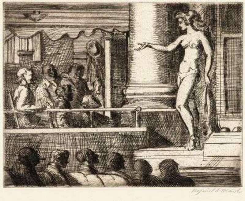 REGINALD MARSH (AMERICAN 1898-1954) STRIPTEASE IN NEW JERSEY
