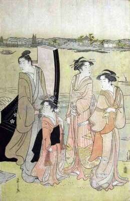 HOSODA EISHI (JAPANESE 1756-1829) UNTITLED (FOUR FIGURES AT THE WATER'S EDGE)