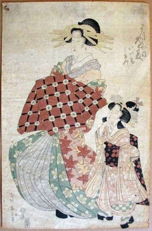 Signed Kikugawa Eizan hitsu, and with Kiwame seal. Color woodcut.
