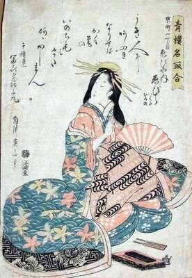 Signed Kikugawa Eizan hitsu and with Kiwame seal. Color woodcut.
